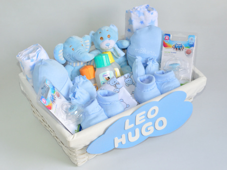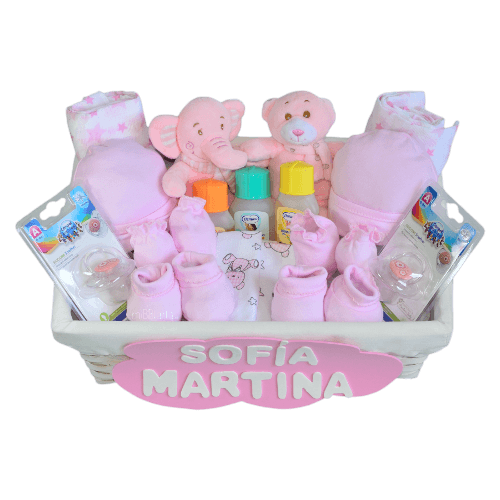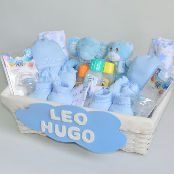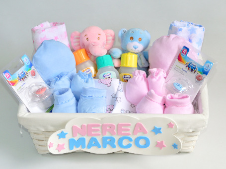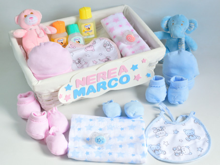 Si buscas un regalo para gemel@s o melliz@s, la Canastilla para gemelos Baby puede ser lo que estabas buscando. Una preciosa bandeja de mimbre cargada de prácticos regalitos para 2 bebés como ropa, productos de aseo y puericultura y juguetes y además personalizada con sus nombres. Un acierto seguro para darle la bienvenida a la parejita y ayudar en lo posible a sus papis que a partir de ahora tendrán doble felicidad y también doble trabajo 😉