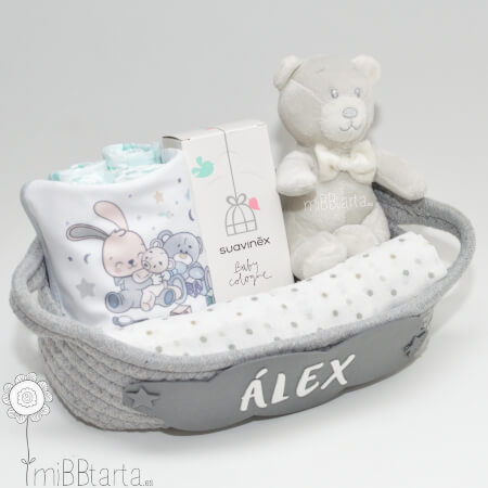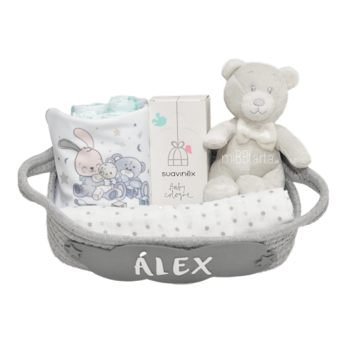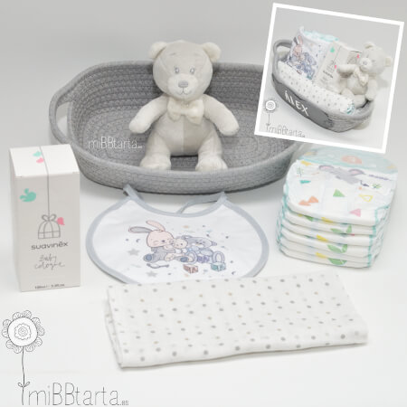 La cesta bebé Suavinex es ideal para darle una bonita bienvenida al bebé. Con el inconfundible olor del agua de colonia Suavinex, para el bebé un dulce peluche que podrá acompañarlo desde el primer día y a los papis/mamis seguro que los pañales y demás productos les vienen genial, además la cestita les podrá servir para para dejar cositas del bebe del día a día.