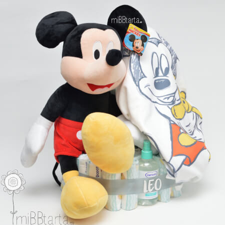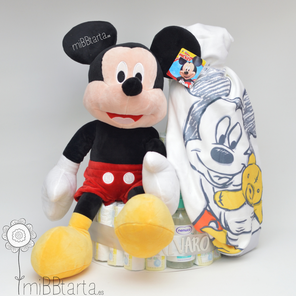 - Tu Tarta de pañales Mickey Mouse llegará envuelta en papel de celofán decorativo con un lazo y la tarjeta de felicitación con todo lo que lleva.