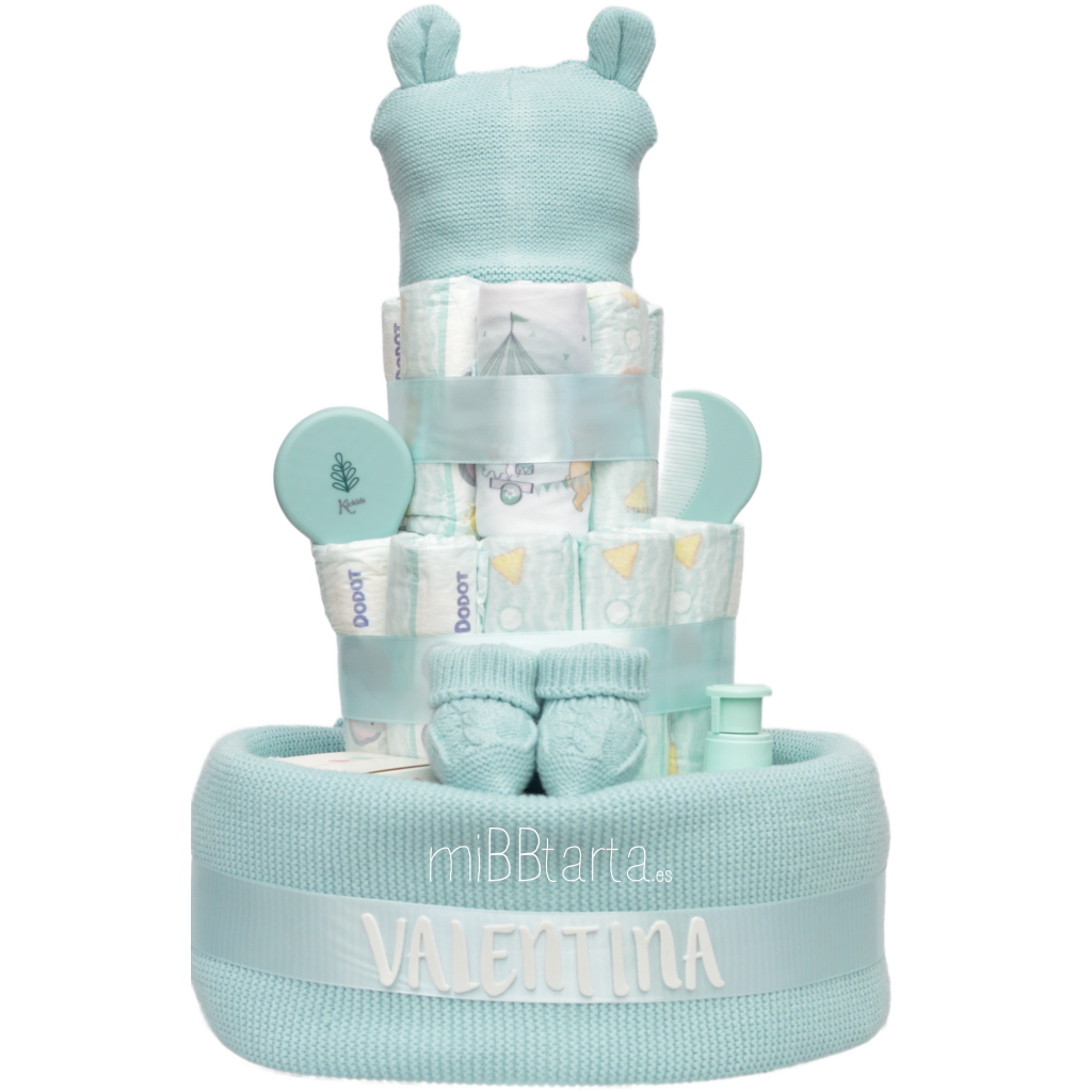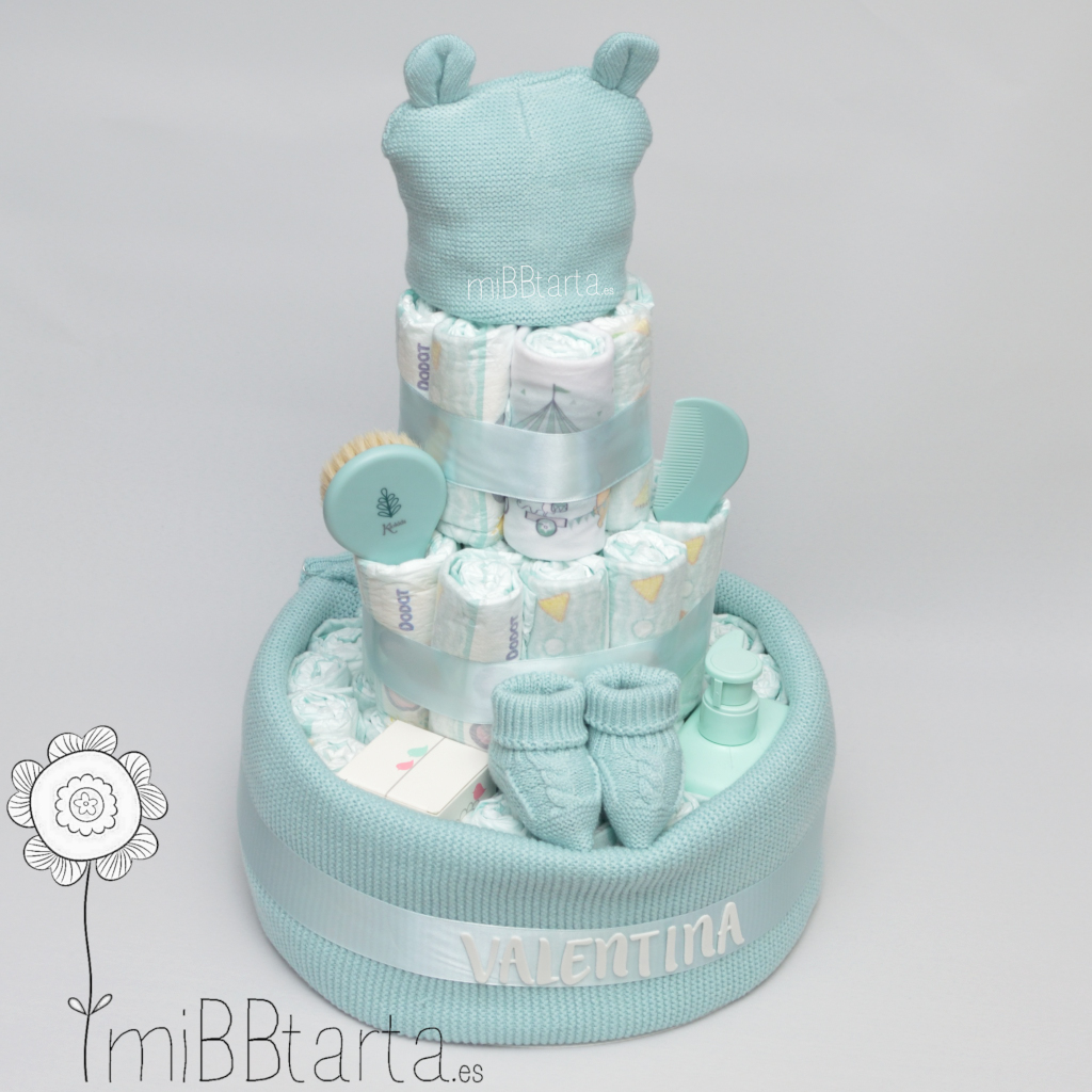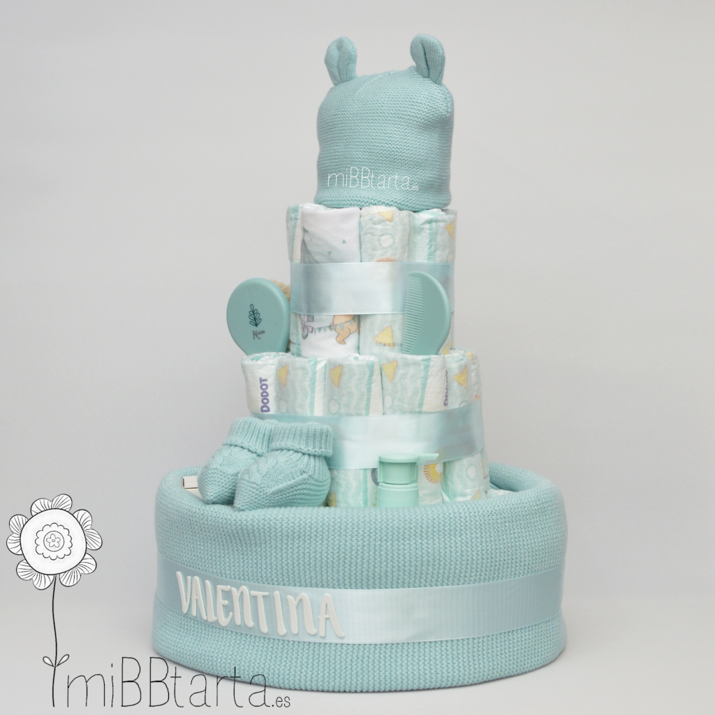 • Tu Tarta de pañales Suavinex llegará envuelta en papel de celofán decorativo con un lazo y la tarjeta de felicitación con todo lo que lleva.