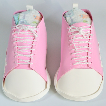 - Tu Tarta de pañales Zapatillas llegará envuelta en papel de celofán decorativo con un lazo y la tarjeta de felicitación con todo lo que lleva.