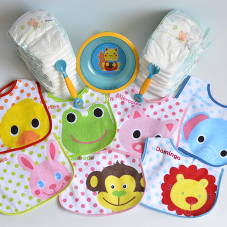 Su primera papilla, sus primeros purés, la primera vez que coma solito… todos estos serán momentos muy importantes, ¿qué te parece regalarle todo lo que necesite para cuando lleguen?; con la Tarta de pañales Días de la Semana podrás hacerlo y además tendrá un babero para cada día, aunque… ¡seguro que necesita más de uno!