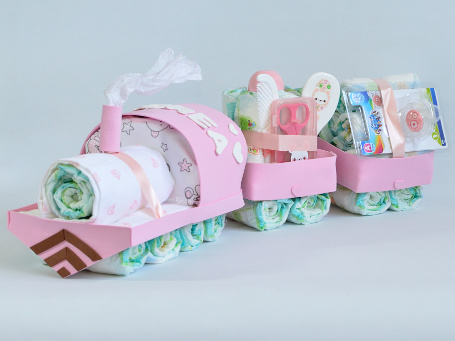 Tren de pañales con vagones