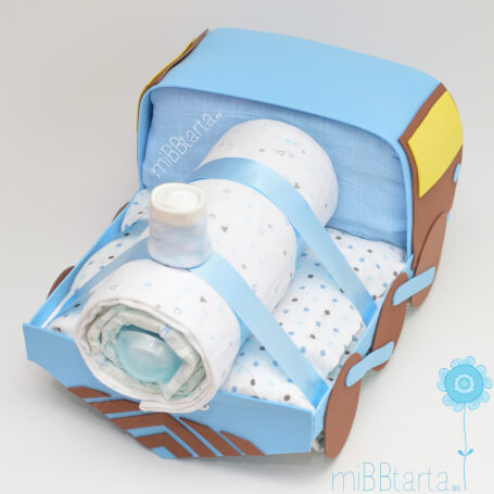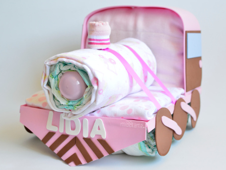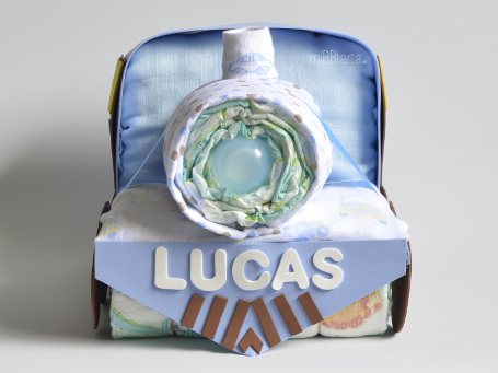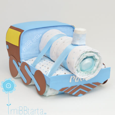 - Tu Tren con pañales llegará envuelto en papel de celofán decorativo con un lazo y la tarjeta de felicitación con todo lo que lleva.